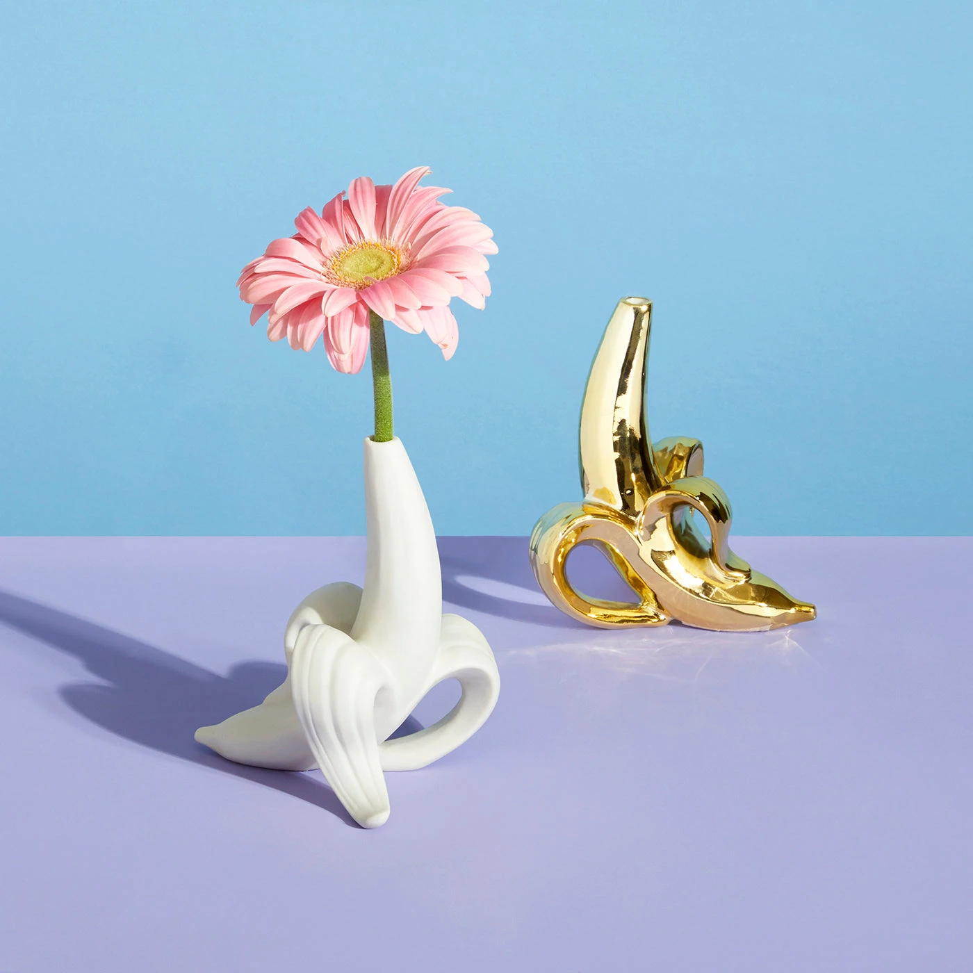 Go bananas over our slyly suggestive vase—surreal in matte porcelain or sparkling in gold glaze.