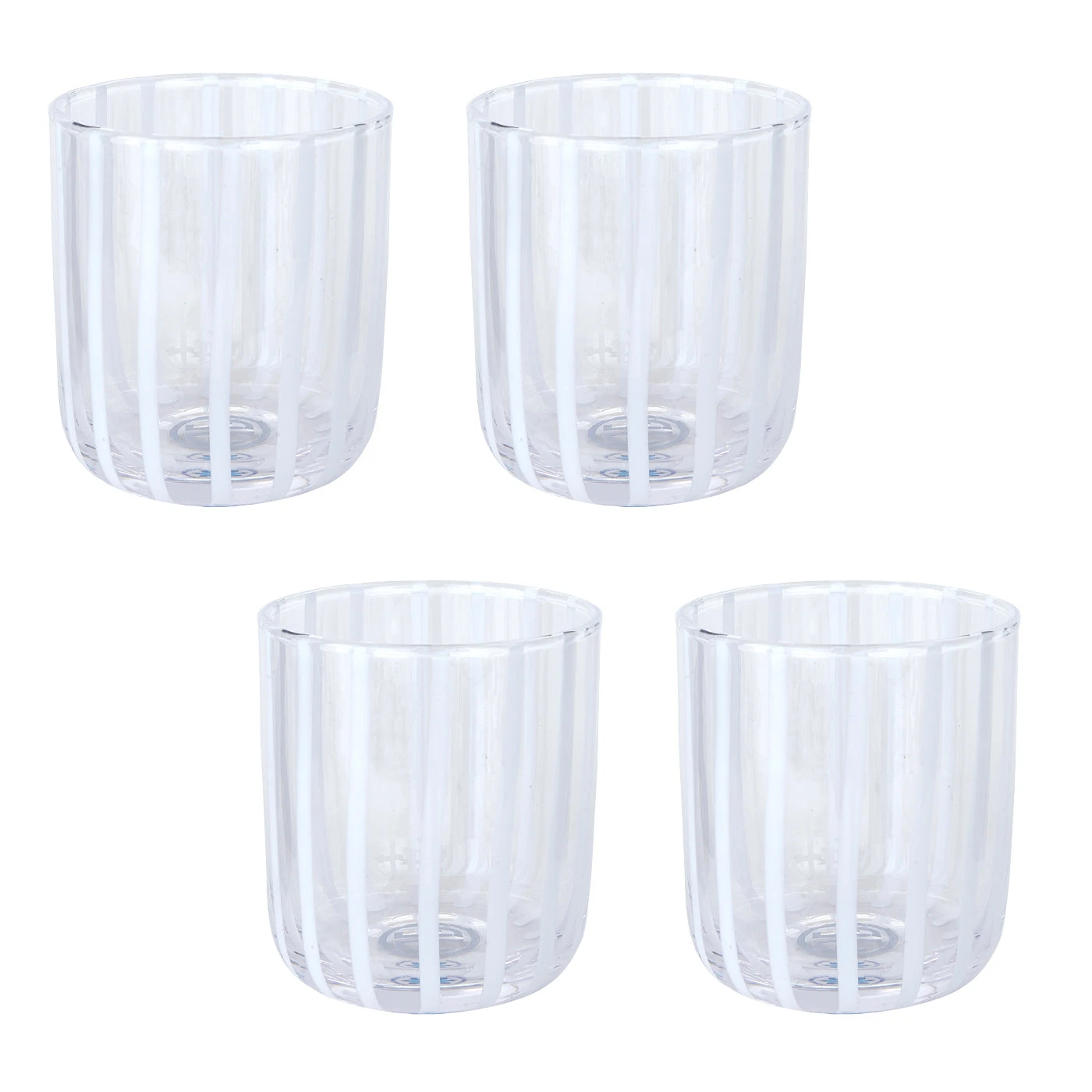 Set includes four (4) Cabana Rocks Glasses in your choice of white or blue stripes.