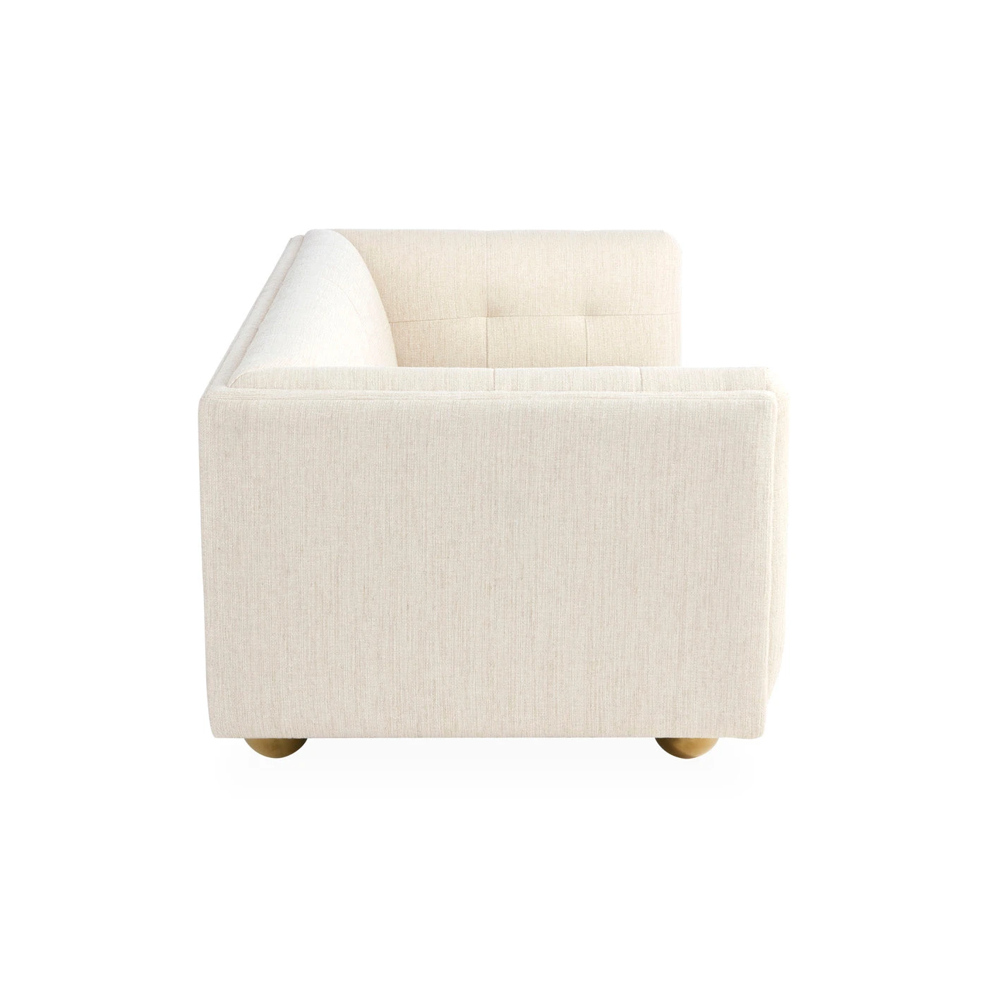 Our spin on the classic Chesterfield. We took the original profile—clubby comfort, tailored tufting—and made it modern with a pared down silhouette. The finishing touch: oversized (and ultra-glam) brass orbs in place of traditional wooden bun feet. The perfect balance of formal and fresh, its loungey depth and neutral linen upholstery make it a must-have for your apartment, pied-à-terre, or a smaller room.