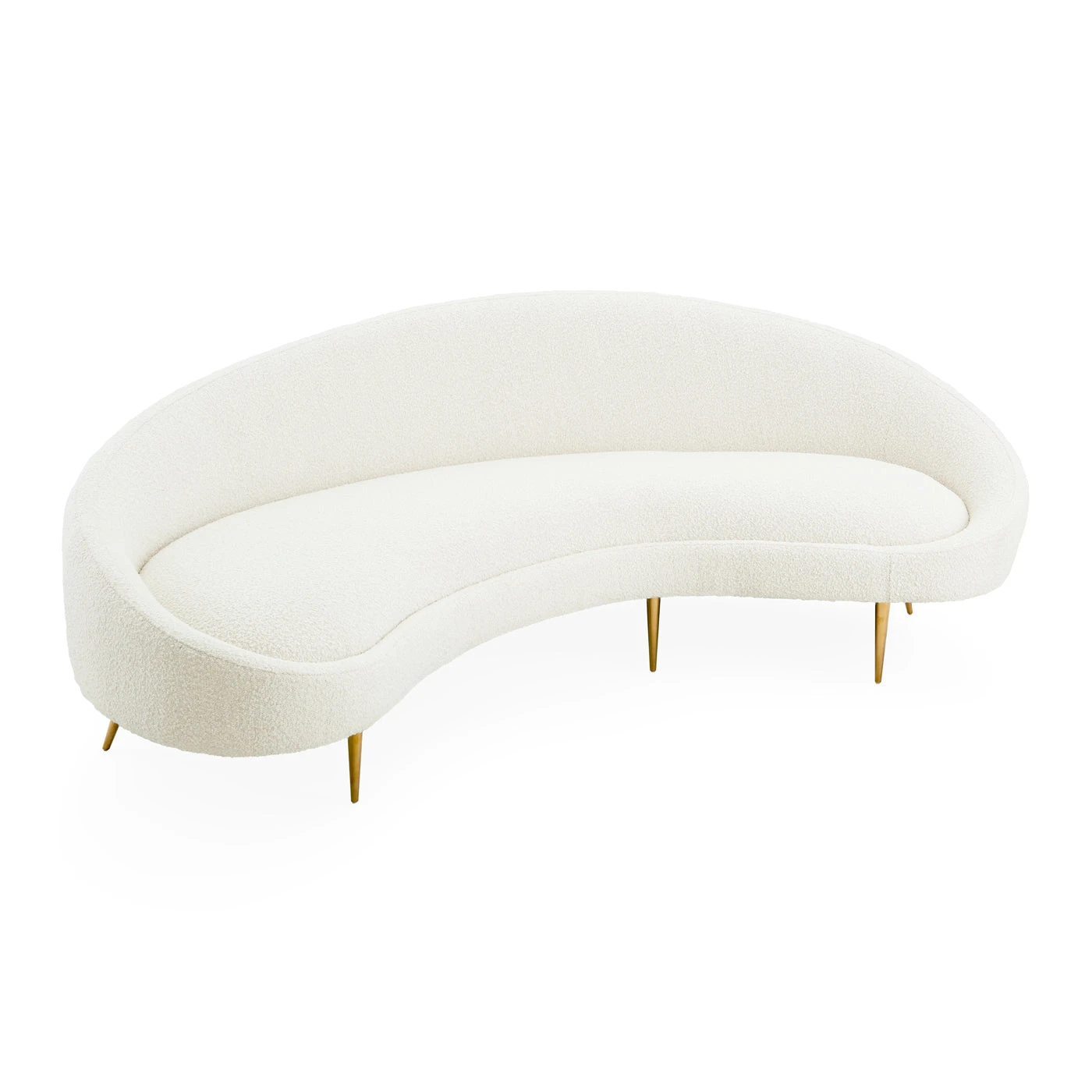 A curved sofa announces to the world that you are on the varsity decorating squad. Airy yet edgy, our Ether Curved sofa is upholstered in heavenly azure or cool and collected graphite velvet, and perched on polished brass stiletto legs.