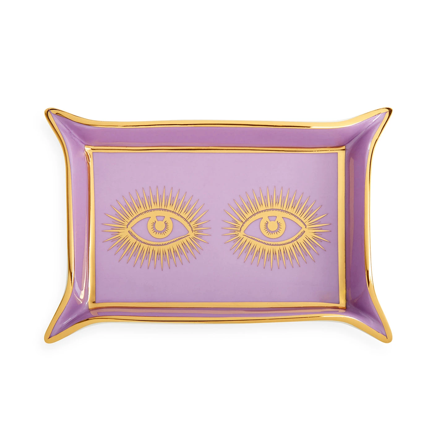 Eye-catching eyes in real gold pop on a posh porcelain dish. In alluring amethyst, our Eyes Tray reinvents the classic valet tray. It’s perfect for corralling your keys on a console, watching over your nightstand, or giving you a glimpse on your vanity.