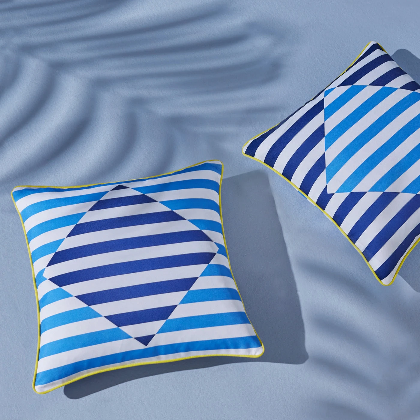 From cabana to poolside, the deck of your boat to the deck in your yard, our bright new range of washable outdoor pillows keep you comfy everywhere (and look chic doing it). All styles arrive stuffed and ready to serve.