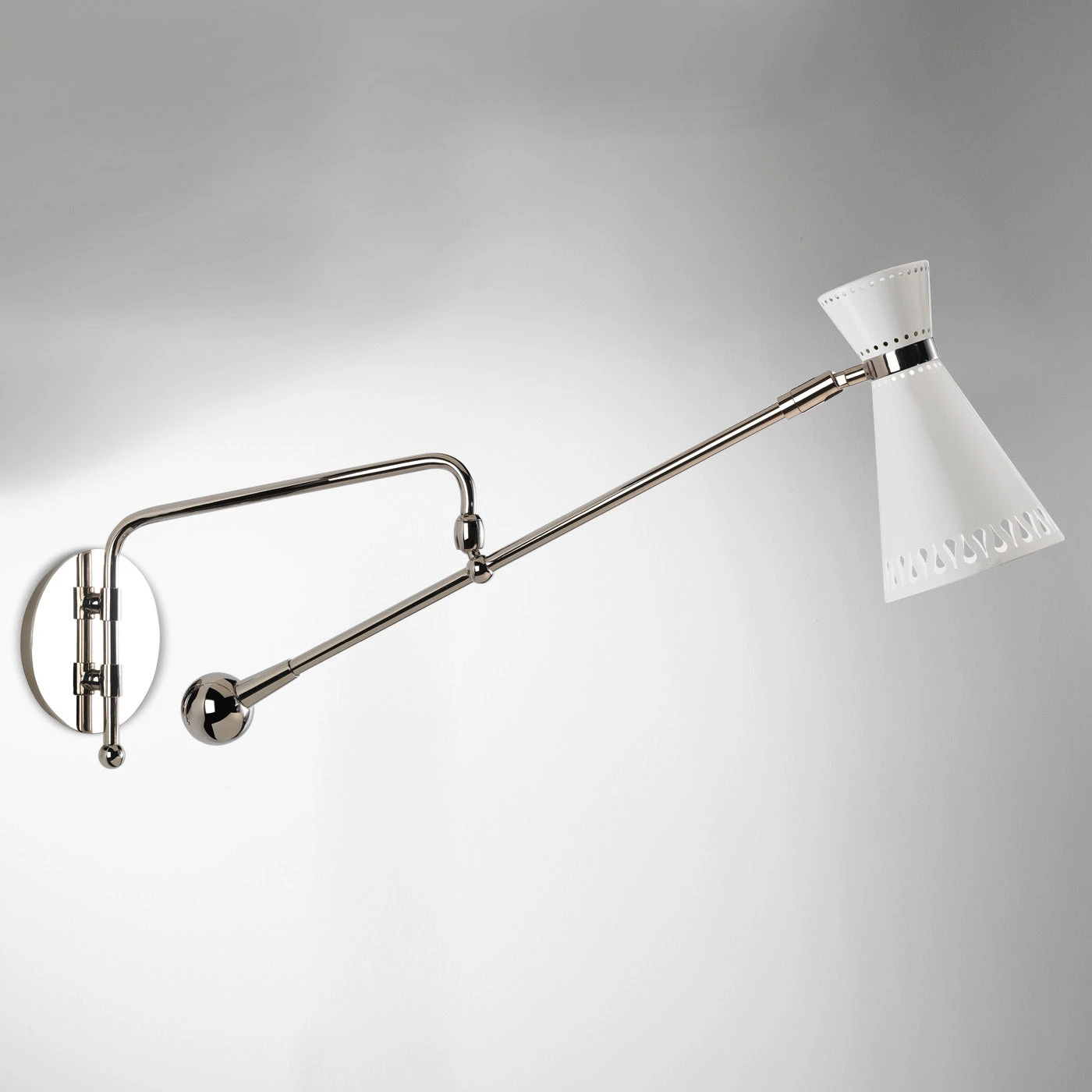 Tapered cones perforated with light-diffusing teardrops. Task lighting gets a modernist upgrade with custom-tooled, pierced shades. Our Havana Swing-Arm Sconce features an adjustable joint, a custom-tooled shade with a laser-cut teardrop pattern, and a polished nickel orb for poppy levity! Graphic flair meets utilitarian chic.