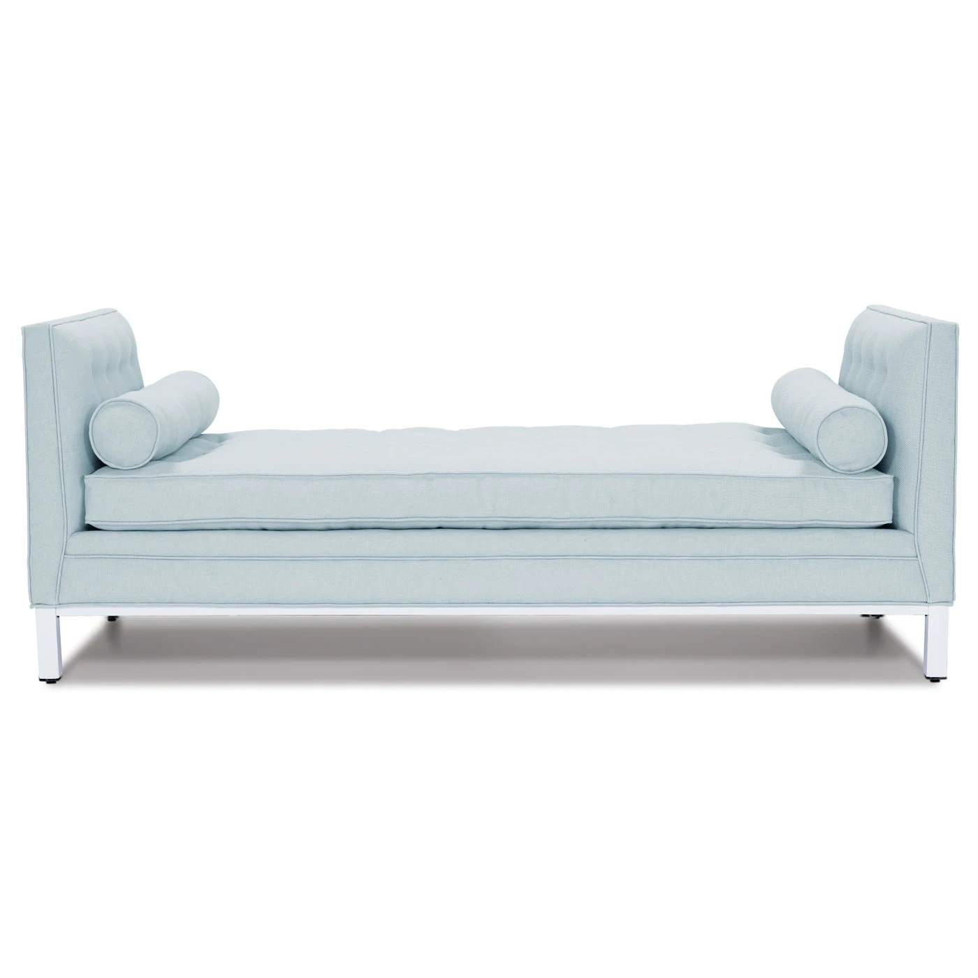 Plush seating with slim proportions, our Lampert Lounger goes al frescoâan airy, backless piece that’s perfect for socializing. High tuxedo sides give it an elegant yet formal presence while the bolsters make it super comfy. Park opposite a sofa for a soiree or pop into a bedroom corner to create a nifty nook.