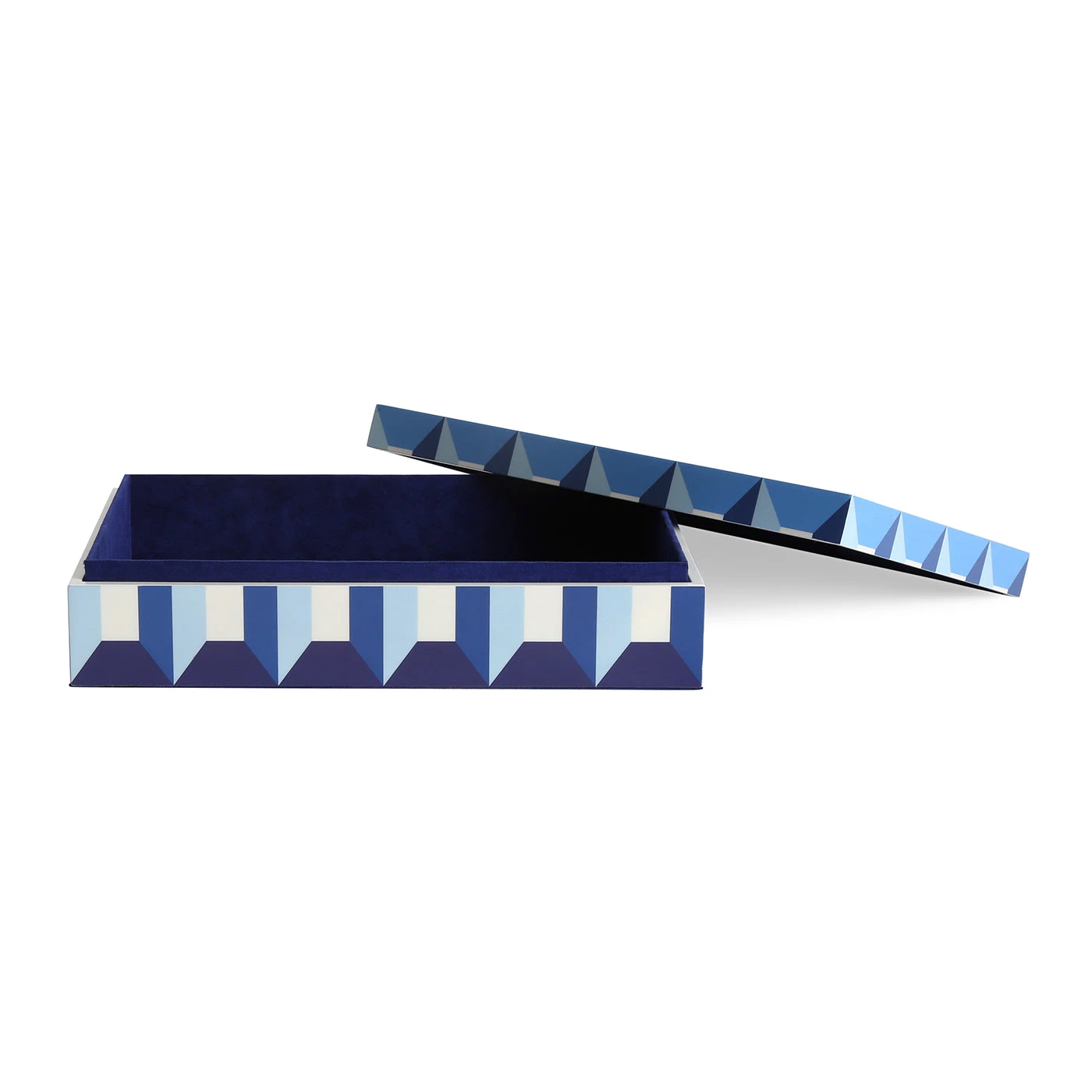 Featuring hand-finished patterns in glossy lacquer, our Sorrento Lacquer Boxes bring brilliant blue hues and trippy dimensionality to your shelf, mantel, or tablescape. Keep your possessions handy but hidden. Available in three sizes for stashing, stacking, or making a stand-alone statement.