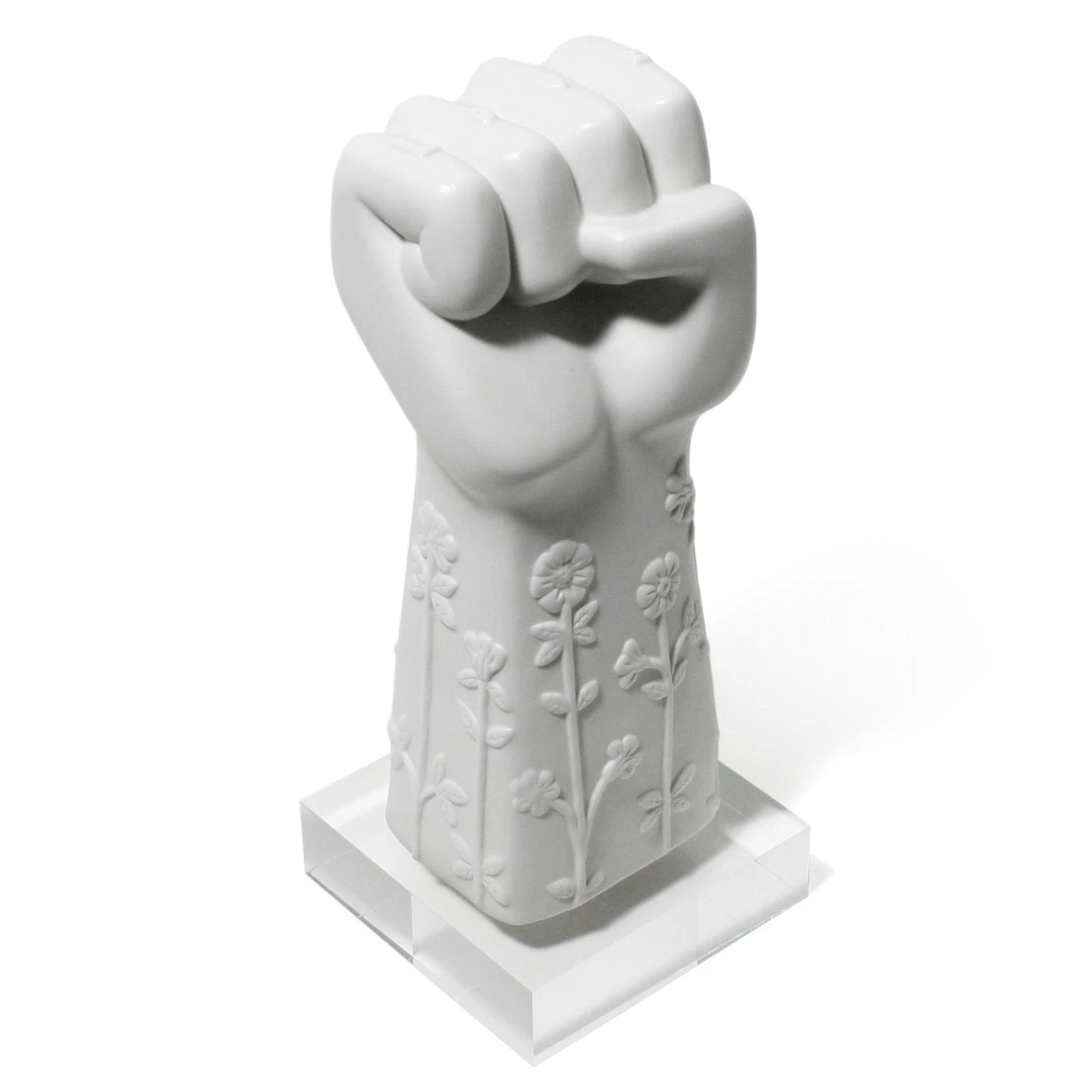 Our statement sculptures are made from high-fired matte porcelain, then poised atop a chic acrylic platform. From your tabletop, mantel or shelf, they’re the perfect way to let guests know what you stand for—peace, love, temptation, or all three.