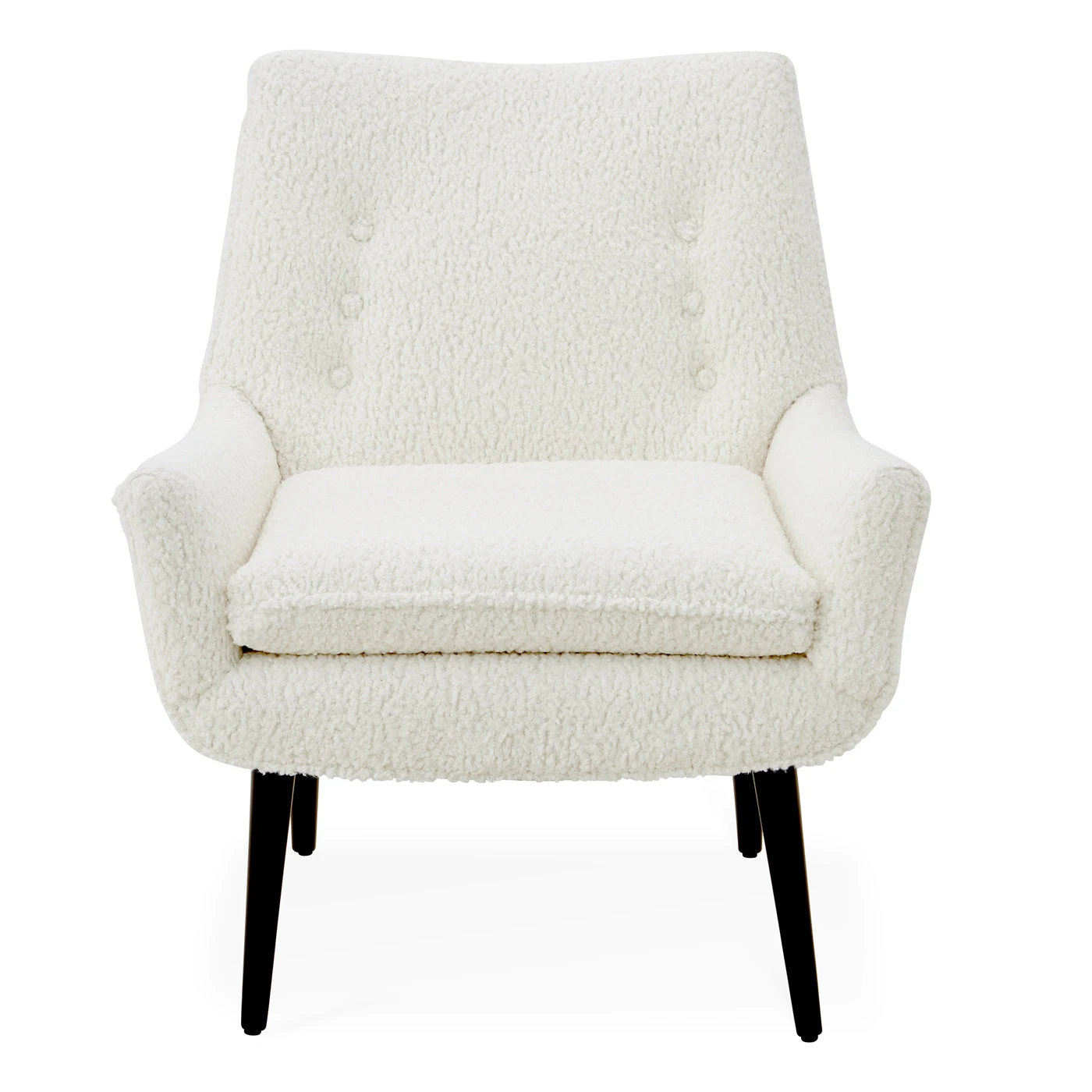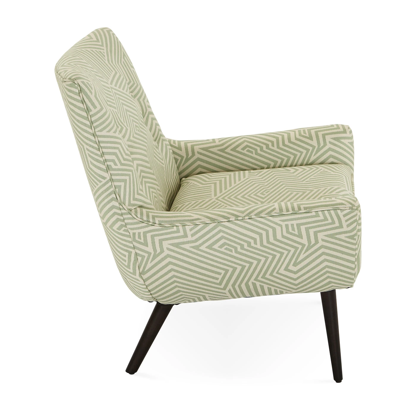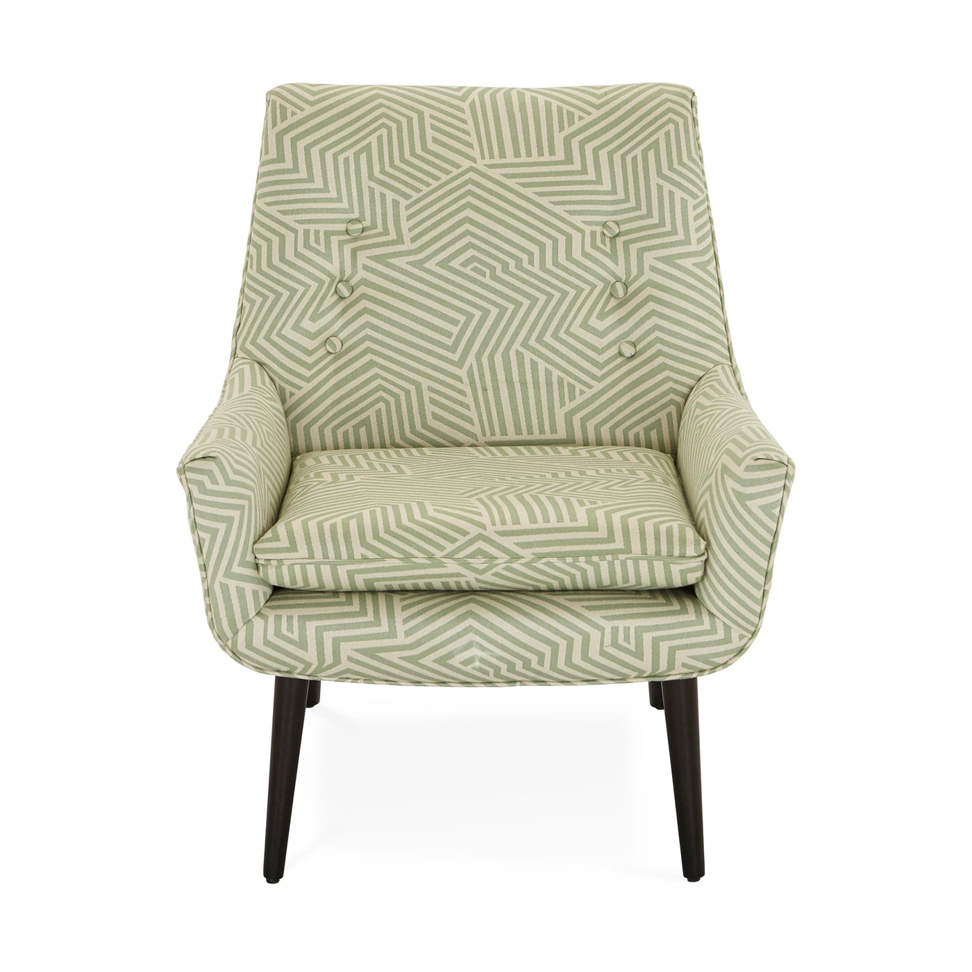 Our Mrs. Godfrey Chair has a small profile, but a big presence. Armed with an elegant swoop and slight pitch, it brings maximum comfort to a cozy space. Piped edges and buttons at the back are the tailored touches that look right at home in a Park Avenue penthouse or Bermuda beach house.