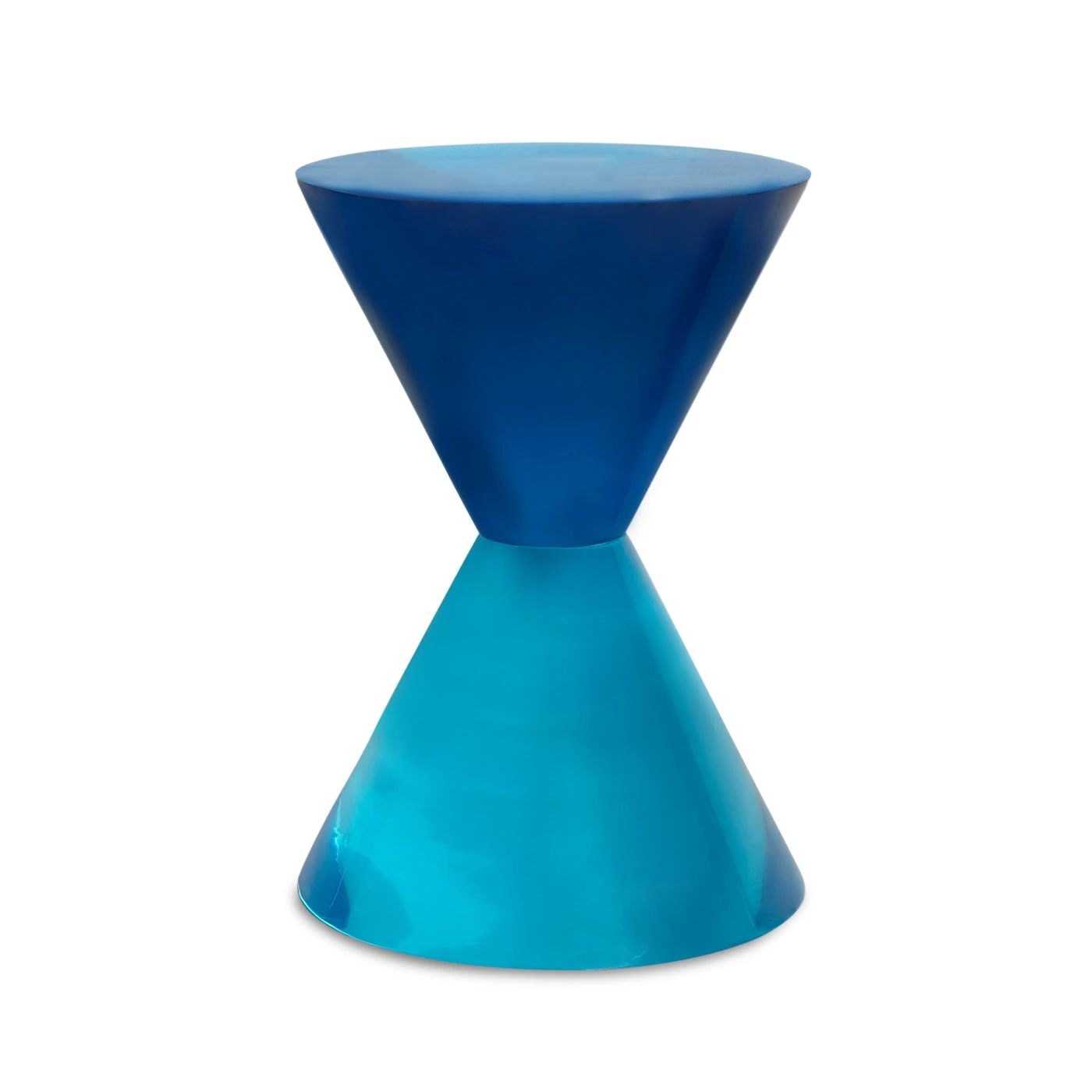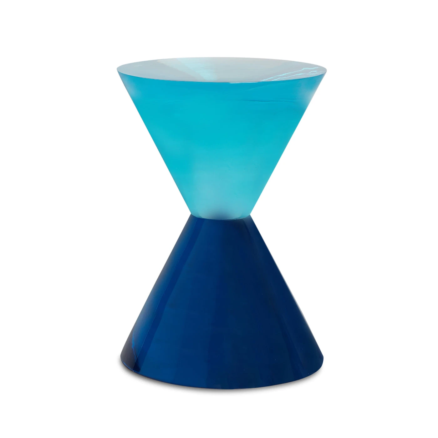 A beautifully balanced reversible silhouette in translucent turquoise and deep blue resin, our Neo Geo Bowtie Table is a fabulously functional sculpture that adds Pop Art panache to your pad. Flip it whenever the room needs a refresh.