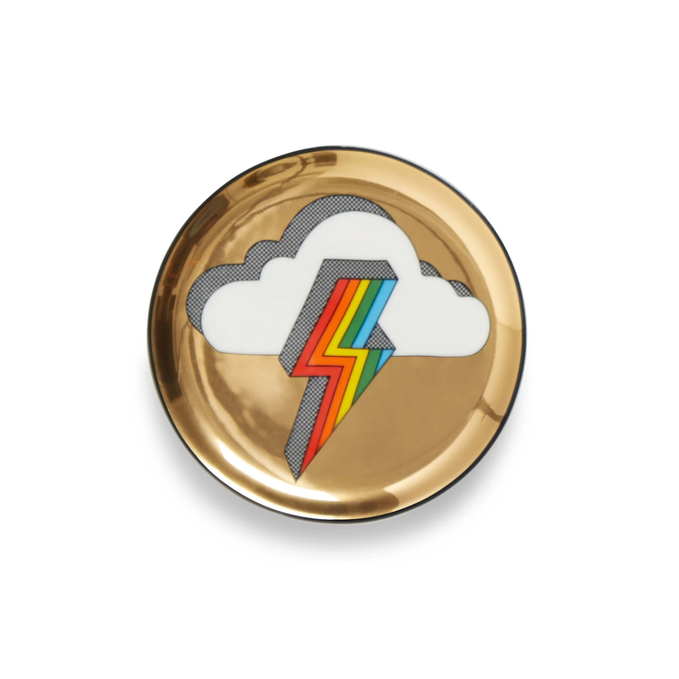A bold splash of rainbow realness takes our universal sky-cons to another dimension. POP! these playful spots anywhere you want to set your sips. Crafted from high-fired porcelain and finished with shimmery gold luster.