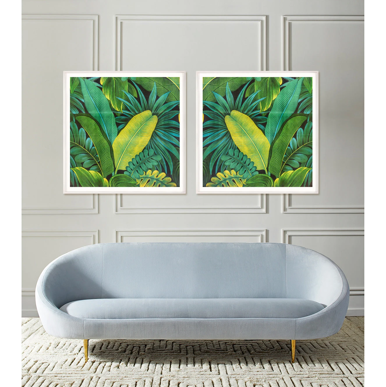 Introducing a new tropical paradise series using an old textile drawing that seems to capture all the different shades of green of the jungle.