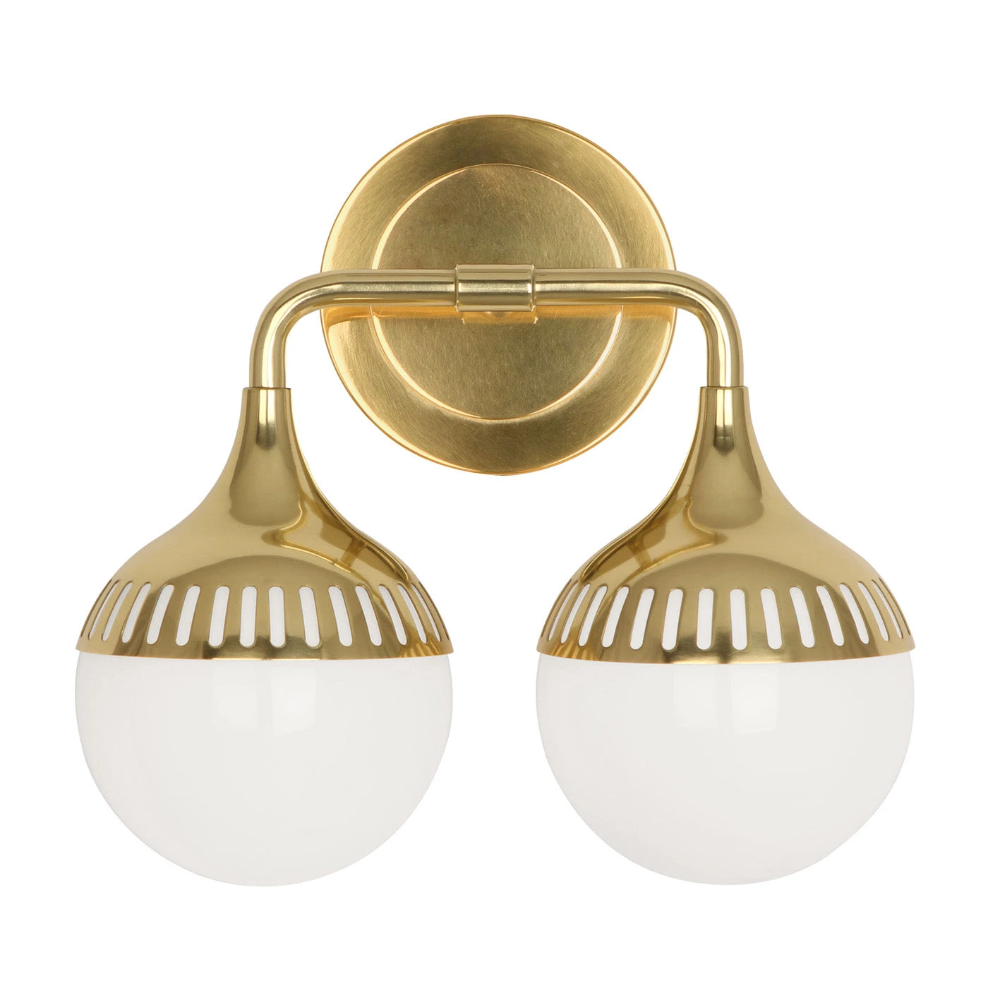 Add a dash of mid-century magic or a flash of futuristic glam with our Rio Two-Light Sconce. Two elongated silhouettes resemble droplets of water, while curved shades featuring laser-cut detailing adds architectural oomph. Go for moody glamour with antique brass or twinkly chic with polished nickel. Mount horizontally or vertically.