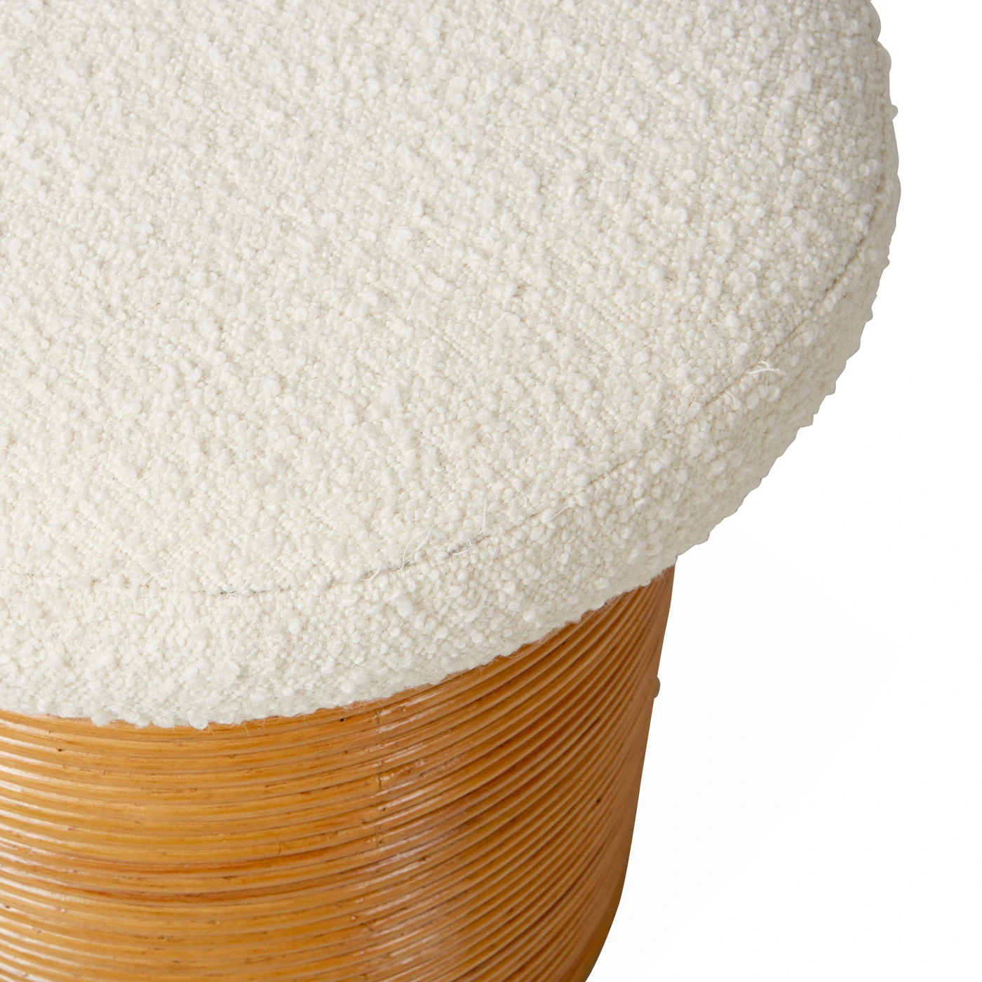 Our Riviera collection is the update on classic French 50s rattan you’ve been waiting for. Evoking grand global glamour, every piece features exquisite craftsmanship—reeds are hand-coiled and steeped in water, then hand-applied and fastened to framework for a stacked effect. Finished in a honey-toned stain coated with glossy lacquer, the result is a rich, room-warming neutral worthy of its sun-drenched namesake. Topped with an oatmeal bouclé cushion, our Riviera Tuffet is even more perfect paired with our Riviera Lounge Chair.